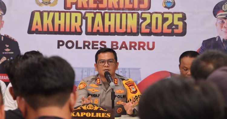 Barru – Kepolisian Resor Barru merilis capaian kinerja sepanjang tahun 2025 yang mencakup bidang kriminalitas, narkoba, lalu lintas, pelayanan kepolisian, serta dukungan terhadap program strategis pemerintah. Rilis akhir tahun tersebut disampaikan langsung Kapolres AKBP Ananda Fauzi Harahap, S.I.K., M.H dalam konferensi pers di Mapolres Barru, Rabu (31/12/2025).
