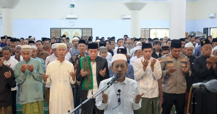 Barru – Personel Polres Barru bersama jamaah Masjid Agung Nurul Iman menggelar salat gaib untuk korban bencana alam yang melanda Aceh, Sumatera Utara dan Sumatera Barat, serta bencana erupsi Gunung Semeru, Jawa Timur. Jumat (5/12/2025).