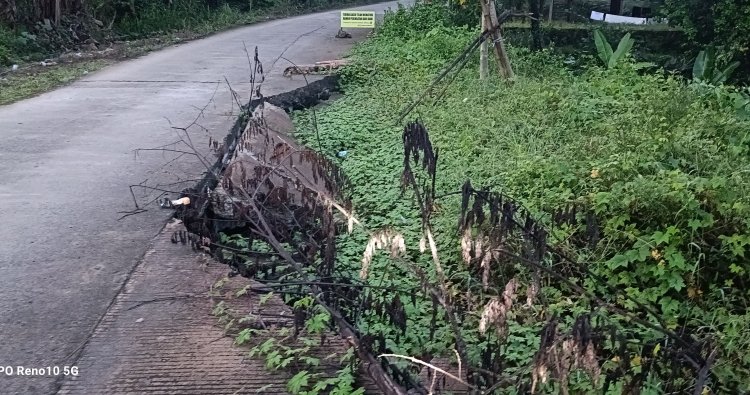 Jalur yang menjadi akses utama bagi warga itu kini hanya menyisakan separuh badan jalan. Bagian yang ambruk dibiarkan begitu saja, bahkan sudah ditumbuhi gulma sehingga semakin tidak terlihat bahwa bagian itu sebenarnya longsor.